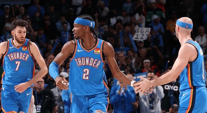除了湖人和老鷹之外,近期瘋狂連勝的還有雷霆隊,最近一場比賽雷霆擊敗東部黑馬魔術,豪取一波9連勝,戰績來到54勝15負,值得一提的是,這場比賽過後,雷霆領先排名西部第7的太陽14.5個勝場,正式鎖定今年NBA第一個季後賽席位。據統計,這是雷霆2010年以來第13次打進季後賽,同期聯盟最多,僅次於凱爾特人(15次)。說實話,自附加賽賽製實行以來,想要拿到直通季後賽的門票,還不太容易哦,因為以前都是分區前八就行,現在必須分區前六。而雷霆這幾年在西部賽區,已經有了絕對的統治力,他們連續兩個賽季都排名西部第一。