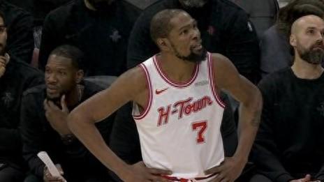 很多激動的火箭球迷把所有的怒火都燒向杜蘭特,而事實上,以杜蘭特37歲的高齡和經曆過斷裂的跟腱,指望他又當爹又當媽,又持球又組織又突破又幹拔已經非常不現實。