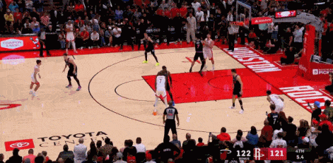阿杜被包夾,拿球準備幹絕殺,但是不中,阿門從45°繞過來,補籃絕殺。