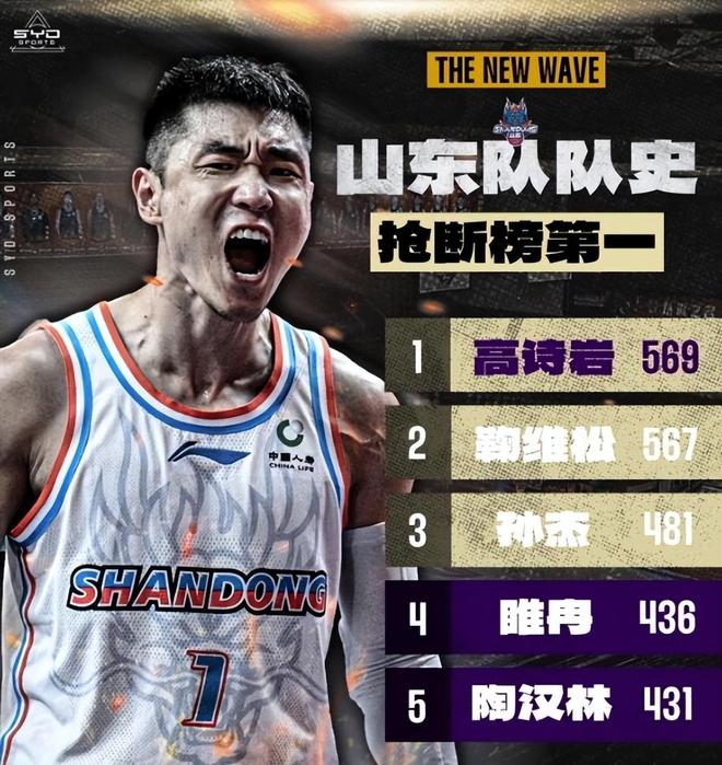 山東男籃在和新疆男籃的比賽中取得了一場20分的大勝,球隊的狀態有了明顯提升。在這場比賽中,高詩岩的表現也非常出色,在出戰29分鍾半時間裏9投7中,高效得到了18分9助攻3搶斷的數據。也正是因為這三次搶斷,讓高詩岩職業生涯的總搶斷數達到了569次,超越了山東男籃名宿鞠維鬆,成為了山東男籃的隊史搶斷王。高詩岩轉發了自己成為隊史搶斷王的圖片,並發聲表示會一步一個腳印,幫助山東男籃走得更遠。