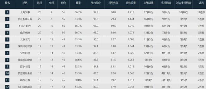 - CBA最新排名出爐!廣廈再次反超上海升第一,黑馬五連勝殺進前四