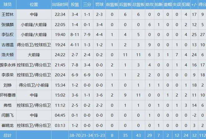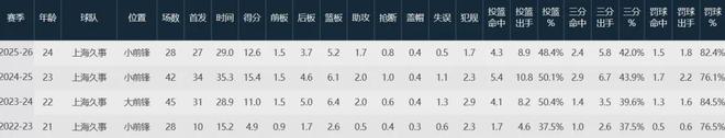 山西隊數據如下: