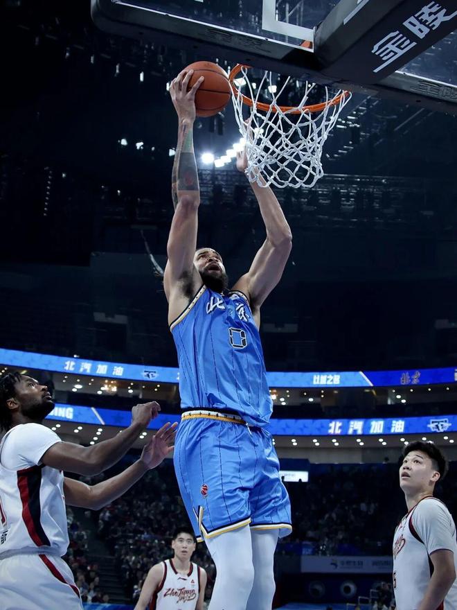 第四節,還是內線!這一節,是周琦和斯佩爾曼聯手化身攻城錘徹底攻破對方防線——周琦高舉高打強硬攻筐連續造成對方犯規,斯佩爾曼外線毫不手軟命中本節個人第二記三分直接打停對手,現場球迷更是以一波人浪來表達激動的情緒!隨著斯佩爾曼強攻打進,分差再次來到兩位數,16-2進攻潮,單節得分20-7,北京男籃最終鎖定比賽勝局!