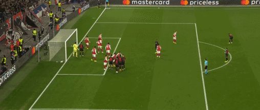 第46分鍾,勒沃庫森球員格裏馬爾多主罰角球開出到後點,安德裏希頭球破門,勒沃庫森1-0阿森納!
