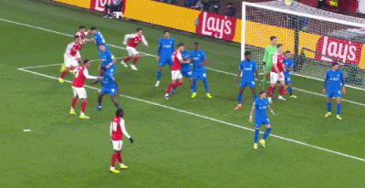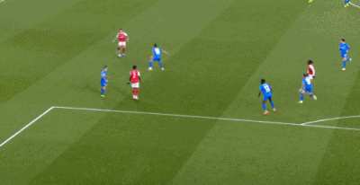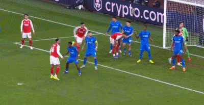 第8分鍾,薩卡開出角球,加布裏埃爾頂在肩膀上出了底線