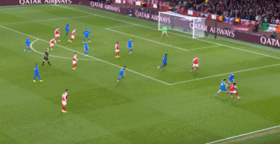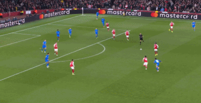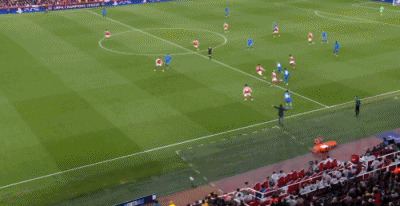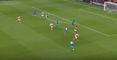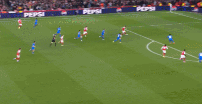 第20分鍾,空間太小,阿森納前場連續配合被斷