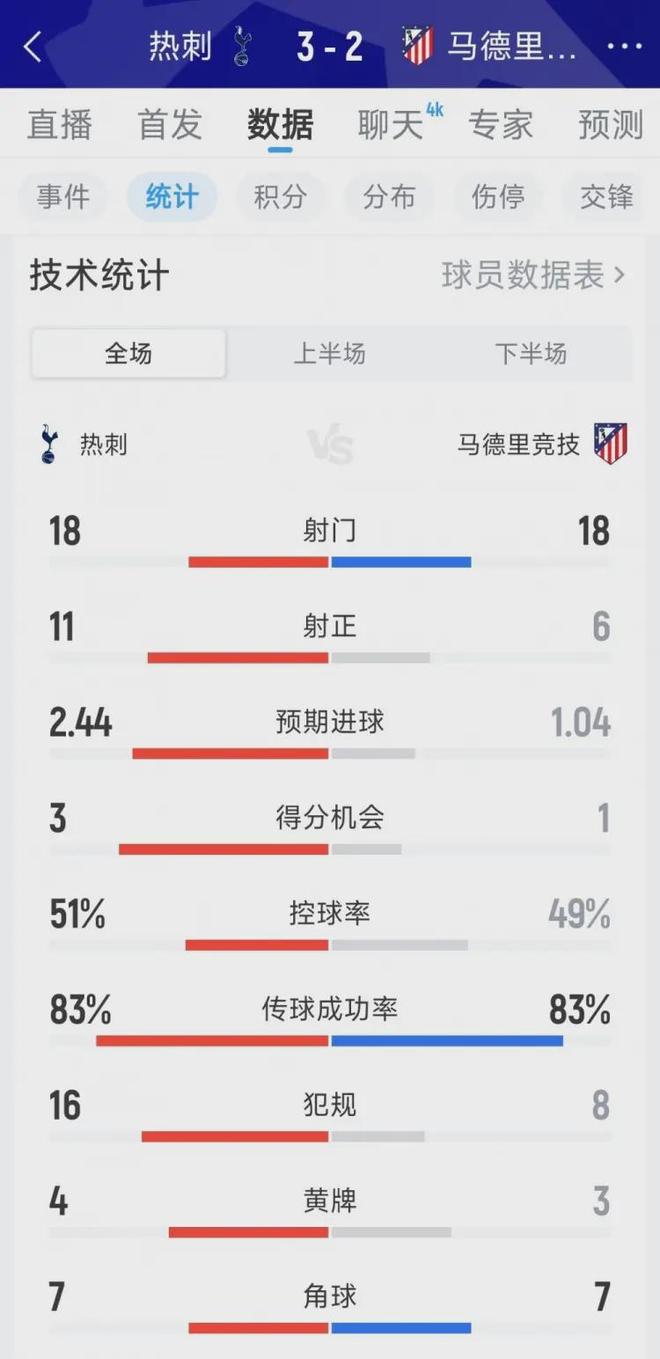 回到主場,熱刺將士踢出了賽季最血性的一戰。哈維·西蒙斯兩記世界波,特爾一次次撕破馬競防線,全場狂轟18腳射門,11次射正。他們3-2擊敗了西甲霸主,贏得蕩氣回腸。