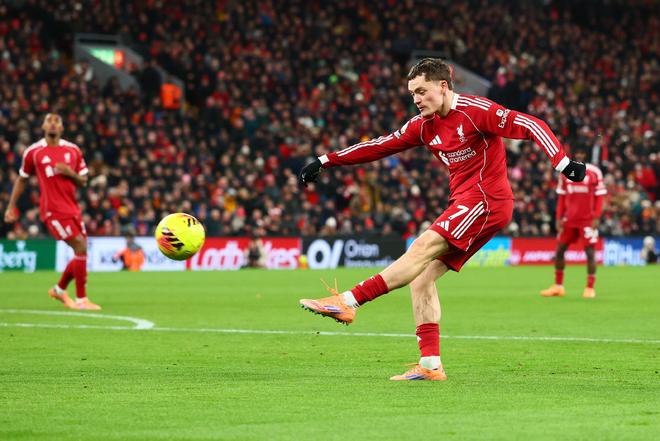 比賽開打,斯洛特鼓舞起到作用,他們來到比賽狀態極快反倒是加拉塔薩雷有點蒙。第26分鍾的,麥卡利斯特給出了角球機會,索博斯洛伊中路跟進之後推射,就此,利物浦1-0,總比分1-1,雙方回歸到了這一樣的起點上,比賽再次歸零了。